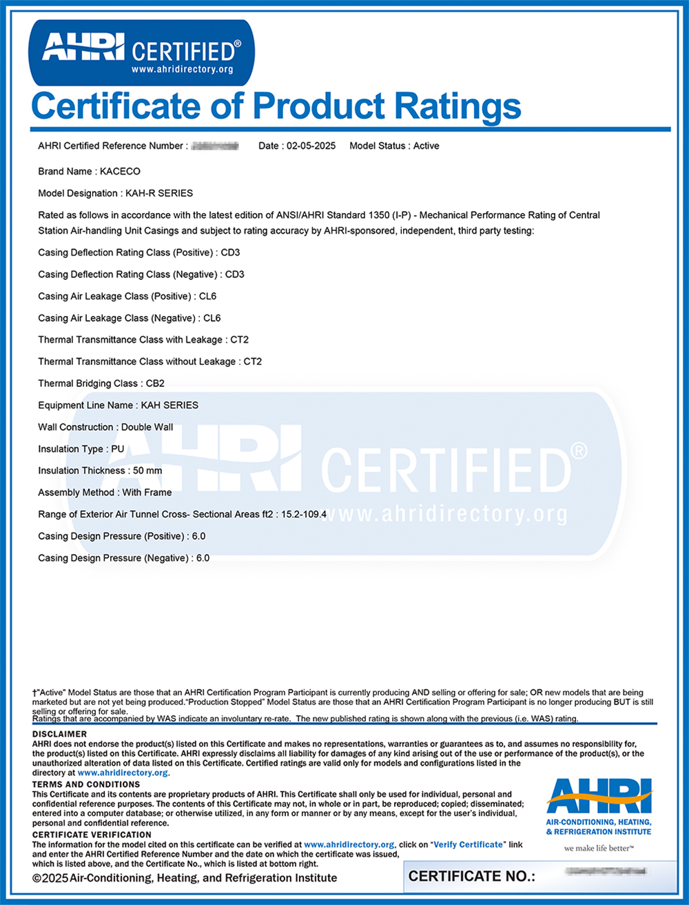 [µî·ÏÁõ&È®Àμ] 19 AHRI ÀÎÁõ¼(AHU CASING : KAH-R-SERIES)