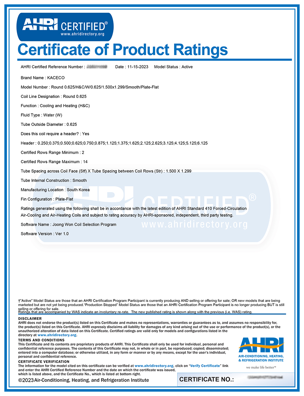 [µî·ÏÁõ&È®Àμ] 20 AHRI ÀÎÁõ¼(Circulation Heating and Cooling Coils)