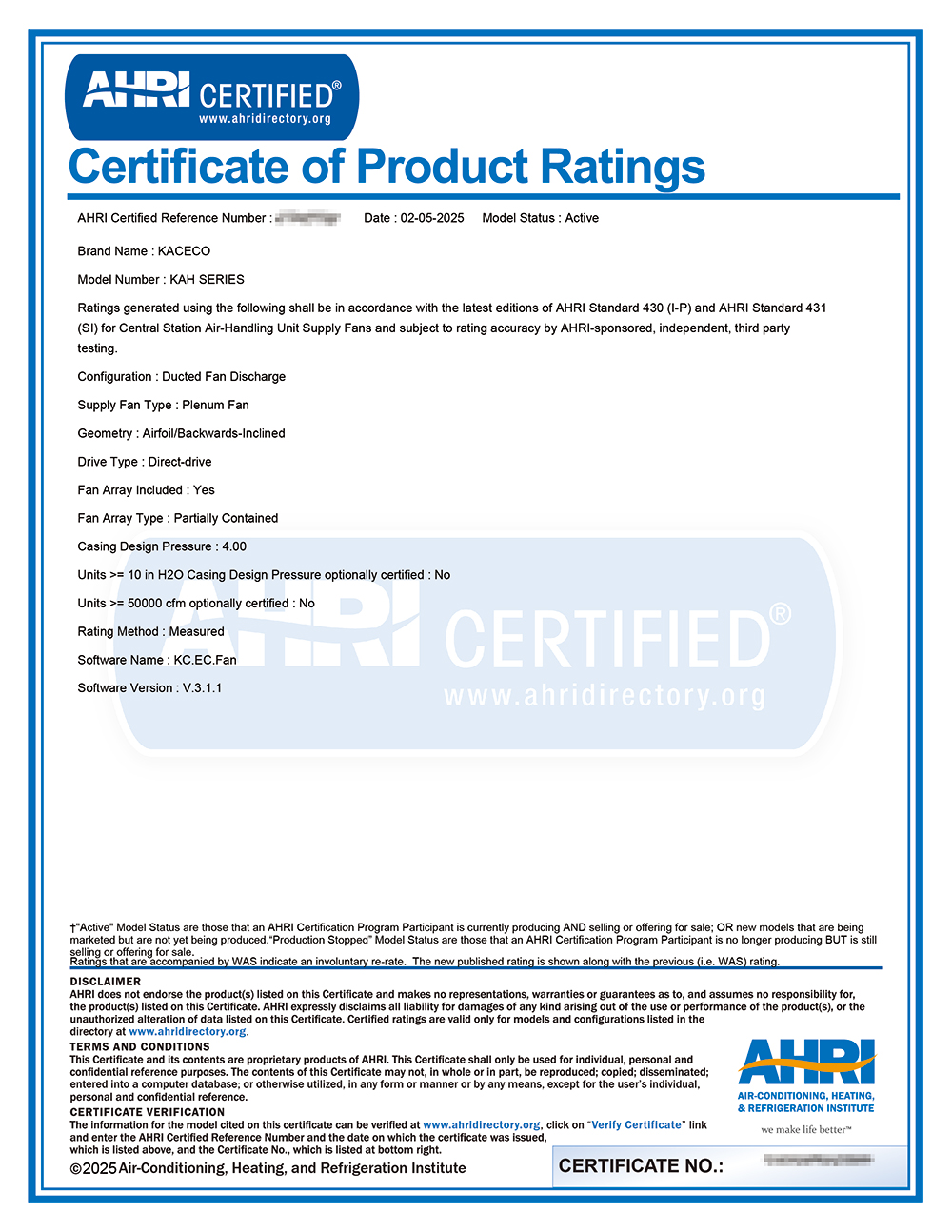[µî·ÏÁõ&È®Àμ] 23 AHRI ÀÎÁõ¼(AHU Fan)